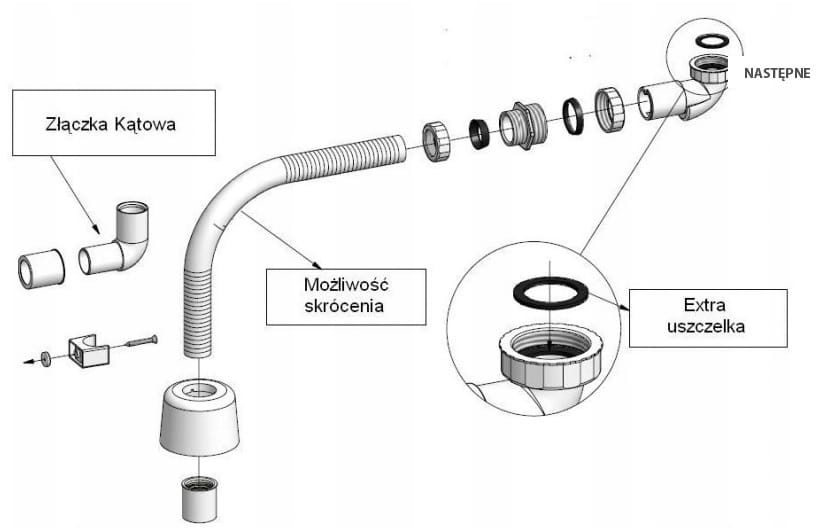 Mosiężna nakrętka – umożliwia idealne dopasowanie do syfonów umywalkowych