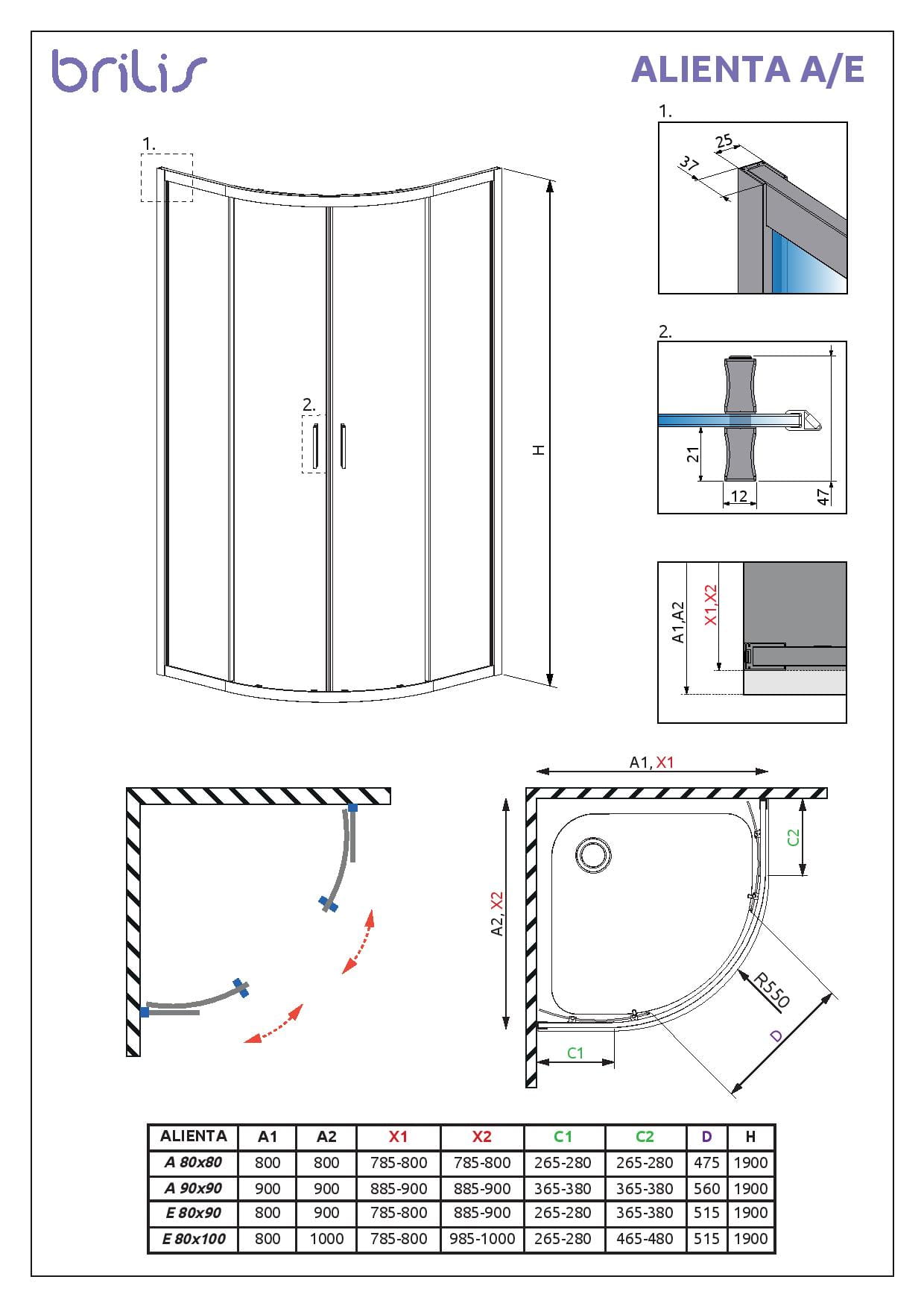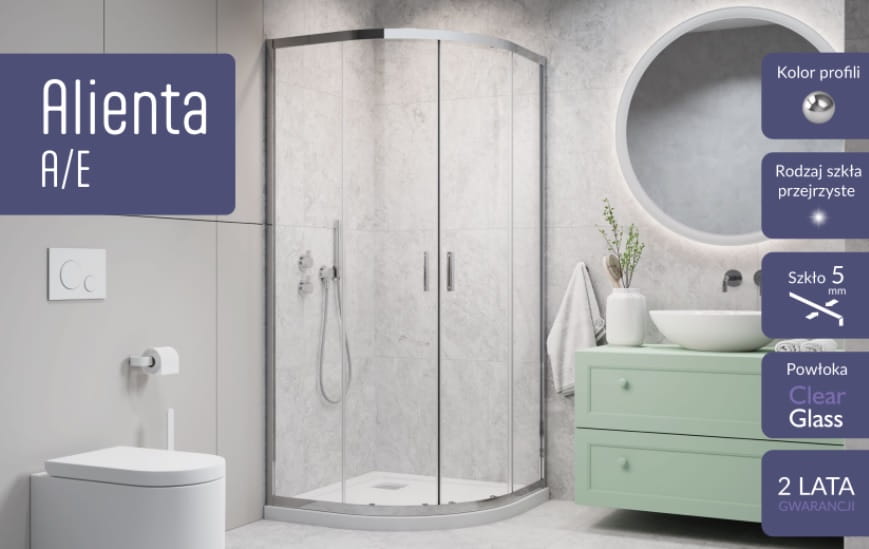 Alienta A kabina półokrągła 80x80cm symetryczna , szkło przejrzyste , nr.kat:10228080-01-01 , montaż uniwersalny lewy lub prawy