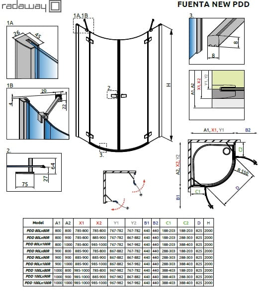 wzór : np. PDD80 LEWA + PDD80 PRAWA = KABINA Z PODWÓJNYMI DRZWIAMI O ROZMIARZE 80x80cm