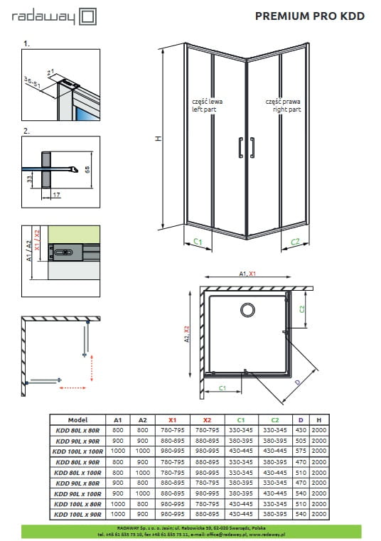 Radaway Premium Pro KDD kabina rozmiar od 80 cm , wariant lewy lub prawy