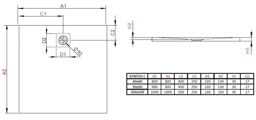 Radaway brodzik Kyntos C antracyt z konglomeratu marmurowego , rozmiary od 80 cm