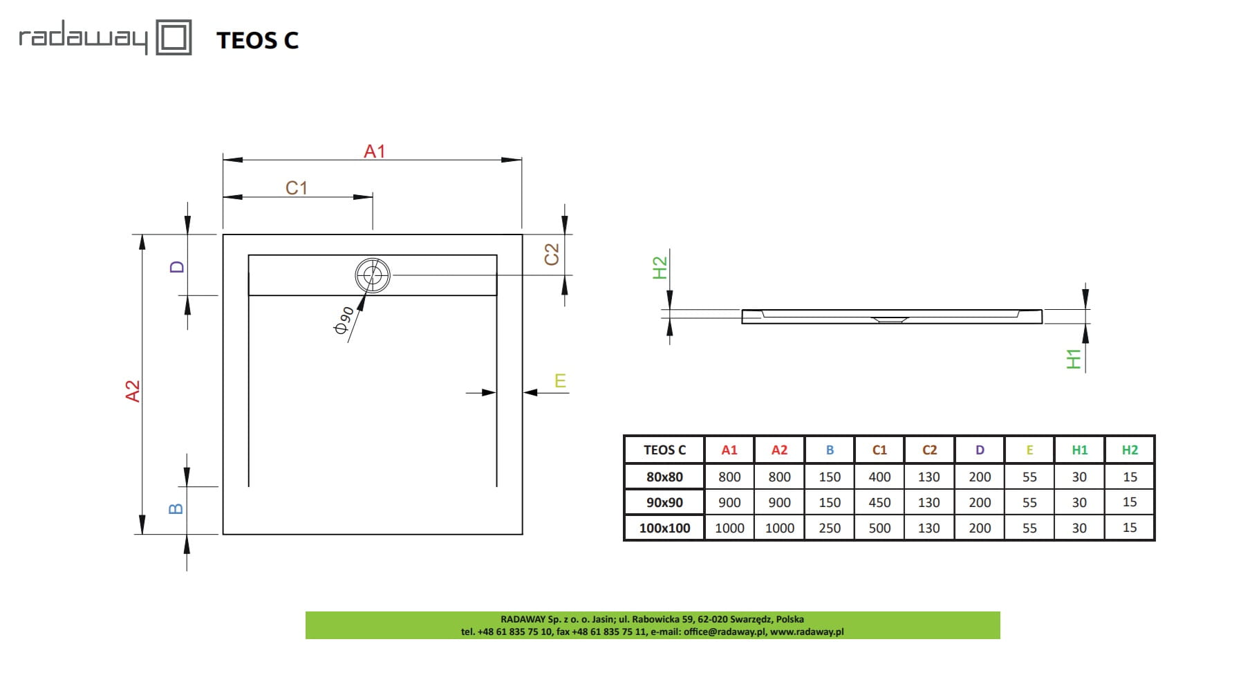 Radaway brodzik Teos C kwadratowy , kolor antracyt z konglomeratu marmurowego , rozmiary od 80 cm