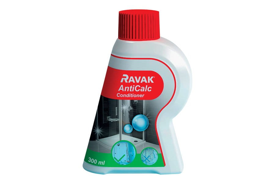 Zalecamy odnawianie powłoki ochronnej preparatem RAVAK AntiCalc Conditioner co dwa - sześć miesięcy w zależności od częstotliwości użytkowania i twardości wody. Przed użyciem środka należy oczyścić szklane wypełnienia produktu na całej powierzchni preparatem RAVAK Cleaner, a następnie nanieść RAVAK AntiCalc Conditioner na suchą ściereczkę lub gąbkę i rozprowadzić równomiernie po całej powierzchni wewnętrznej szkła. Po dziesięciu minutach działania preparatu szkło wypolerować do sucha lub opłukać wodą i zetrzeć gumową ściągaczką. Regularne stosowanie preparatu RAVAK AntiCalc Conditioner przedłuża żywotność produktu, a RAVAK gwarantuje całkowitą skuteczność zabezpieczenia powierzchni.