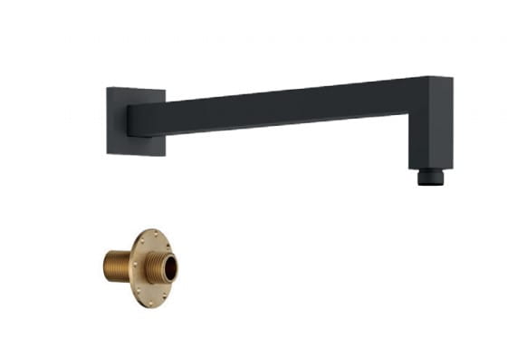 Ramię prysznicowe ścienne, kwadratowe 40cm zostało wykonane z wysokiej jakości mosiądzu i pokryte powłoką w kolorze czarny mat. Produkt posiada elegancką rozetę do montażu ściennego. Ponadto ramię ścienne wyposażono w dodatkowy element montażowy zapewniający lepsze zamocowanie produktu w ścianie.